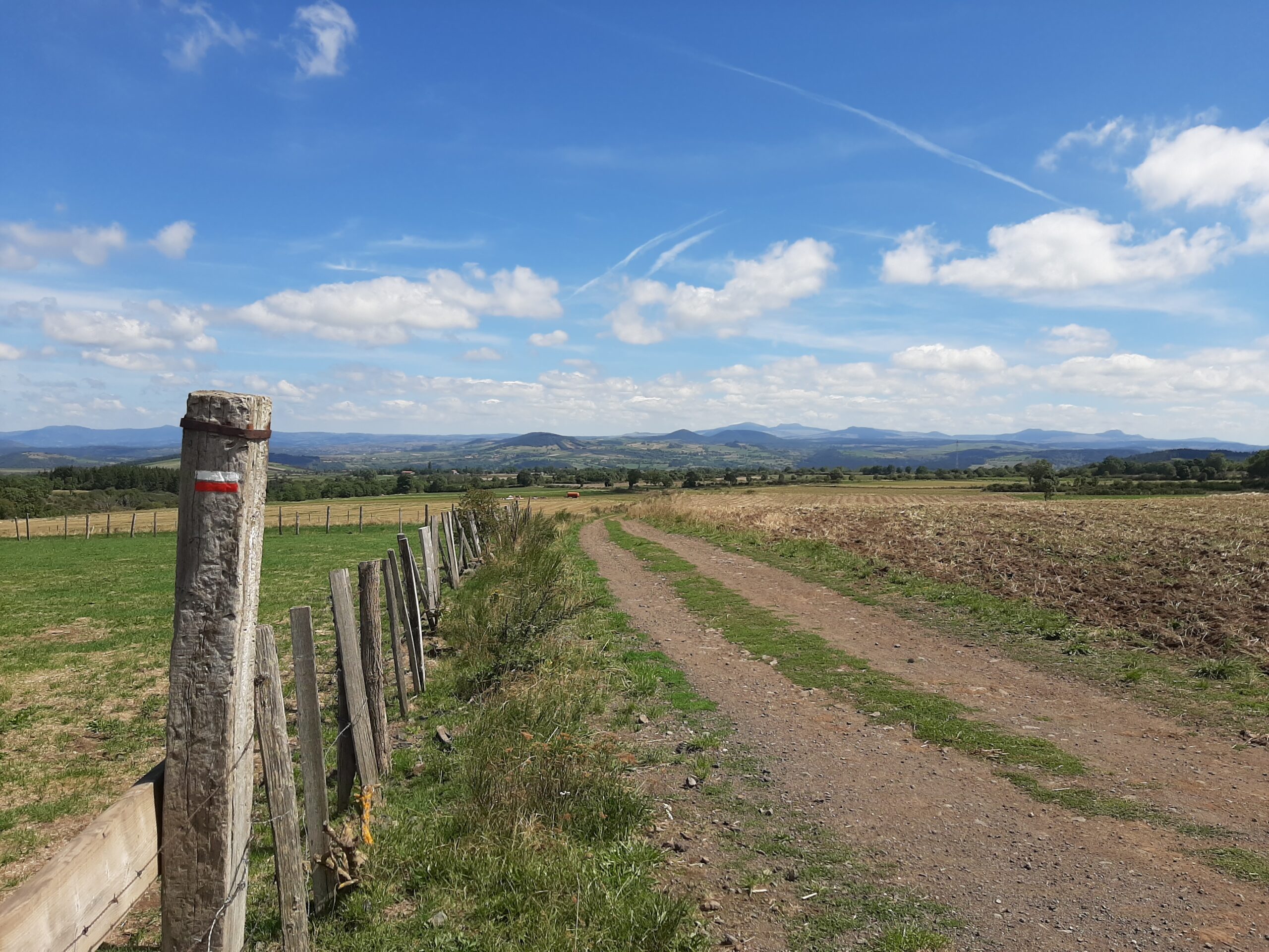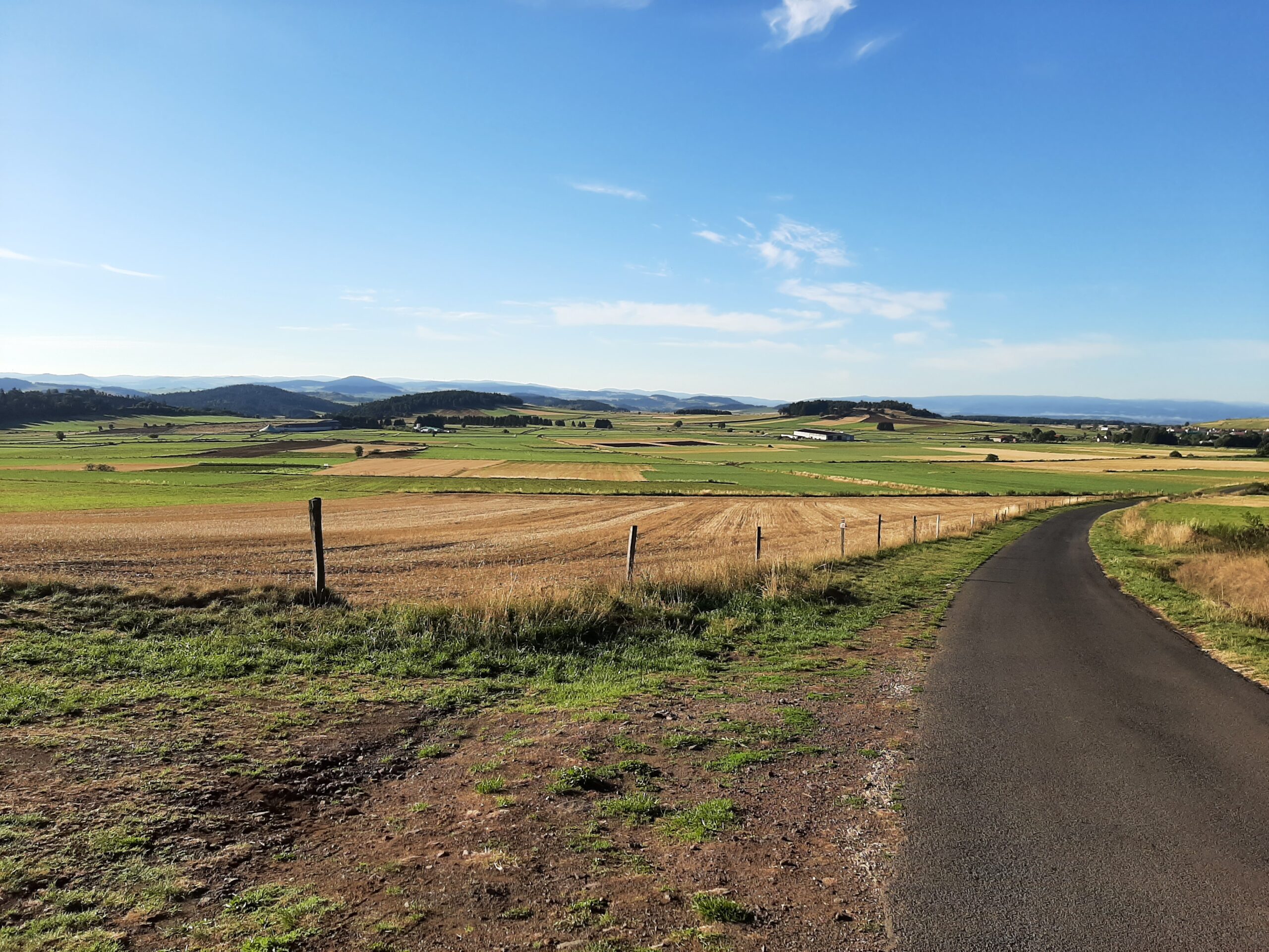 De vastes paysages s’étalent entre le Bouchet-Saint-Nicolas et Pradelles. Par certains aspects, ils m’ont rappelé les Causses : larges étendues de plaines, encadrées par de petites collines ici et là, où le regard porte au loin et cherche le chemin à suivre dans l’immensité.