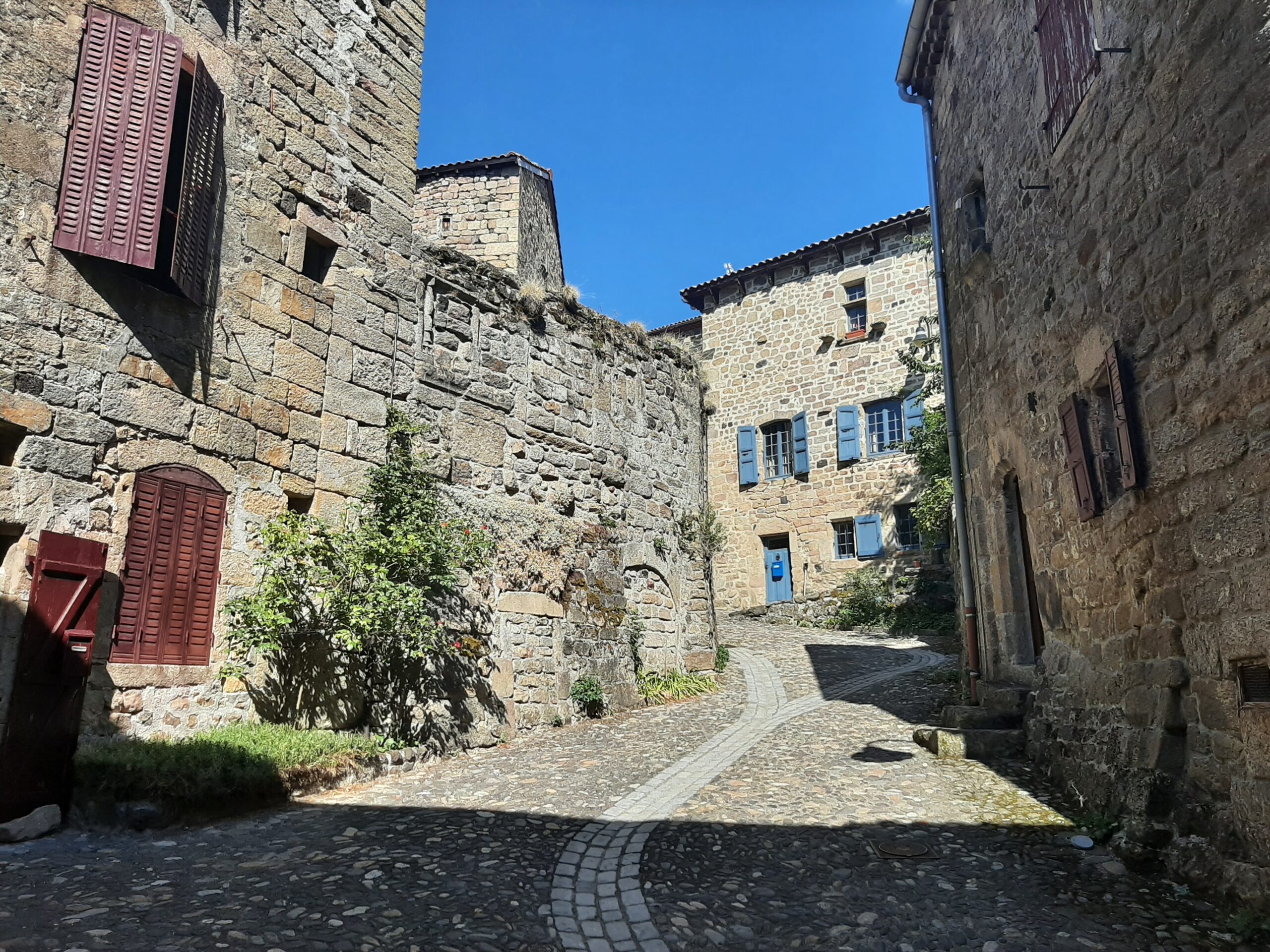 Pradelles, jolie bourgade endormie où je ferai halte en début de parcours, dont l’entrelacs de ruelles sinueuses et tortueuses recèlent de trésors qui ne demandent qu’à être découverts : maisons de pierres, courettes où il ferait bon passer quelques instants à l’ombre, ou dégagements qui laisse admirer la vue sur le lac de Naussac.