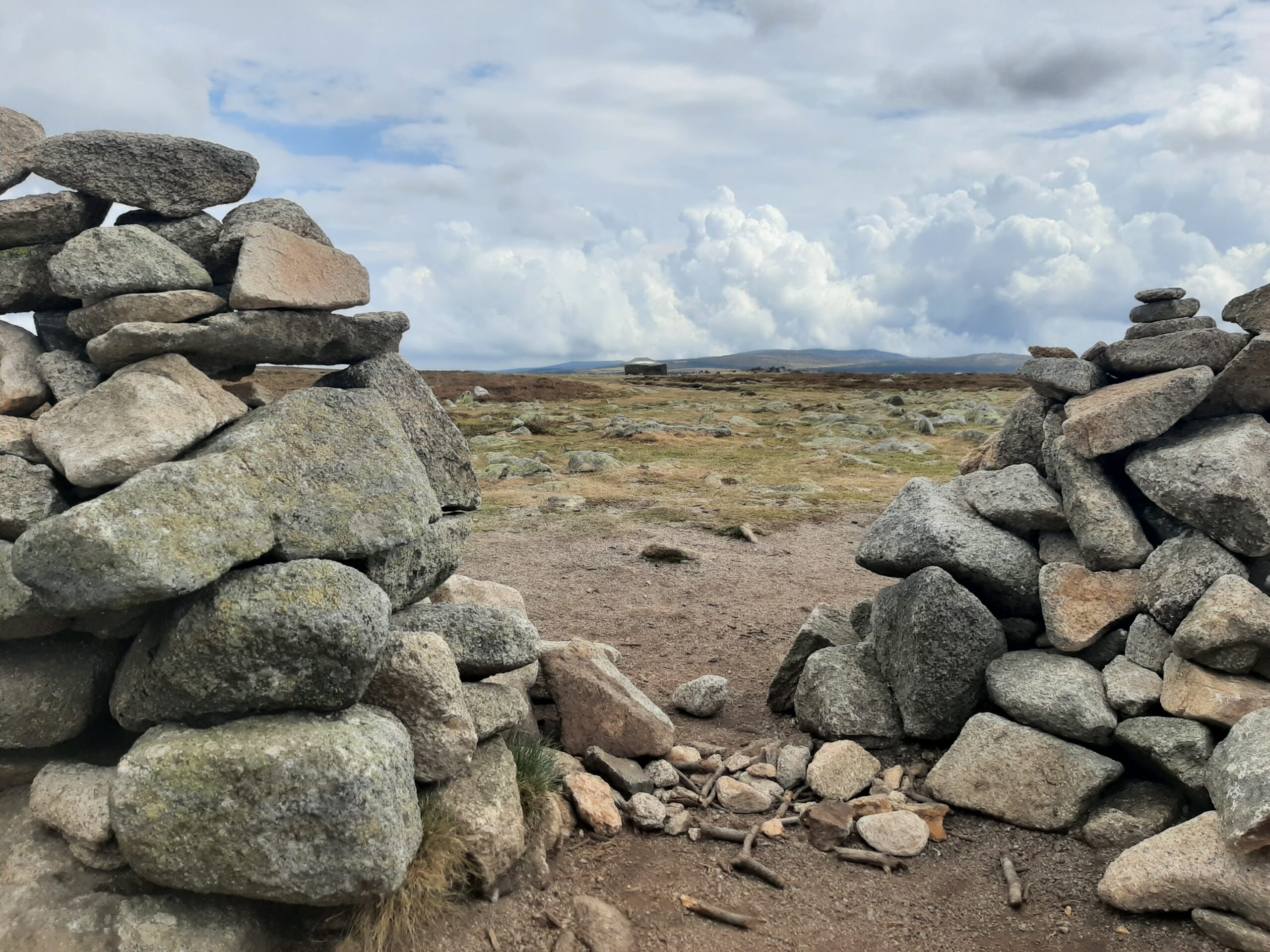 Incontestablement, l’étape entre le Bleymard et le Pont-de-Montvert, et permettant de franchir le mont Lozère, est celle que j’ai trouvée la plus belle, et fait partie des étapes marquantes de mon périple. Passée la station de sports d’hiver du mont Lozère, l’ascension se poursuit vers le sommet. Les versants sont pelés et recouverts de bruyère et de myrtilliers. À cette saison, cela donne une robe rouge aux flancs du massif. La pente est douce, jalonnée de montjoies, ces grandes pierres permettant aux bergers de se répérer dans la brume ou lorsque le chemin est recouvert de neige. Le sommet est presque plat et la météo, qui s’annonçait mauvaise, est relativement clémente pour admirer le paysage. Je suis particulièrement heureux d’aperçevoir le causse Méjean tout à côté et sur lequel j’ai pu randonner à deux reprises. Les falaises déchiquetées et délimitant le causse se dessinent très bien de loin. La vue est vraiment très belle et j’ai pris beaucoup de plaisir à contempler au loin les différents massifs.