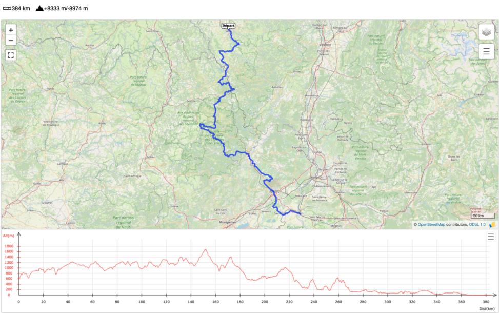Parcourir le chemin de Stevenson ne prenant qu’une douzaine de jours, du Puy-en-Velay jusqu’à Alès, il me fallait alors trouver une suite à donner à celui-ci afin de pouvoir marcher durant trois semaines pleines sur le chemins noirs, comme les nomme Sylvain Tesson dans son livre éponyme, chemins situés loin des centre urbains et qui permettent d’aller à la rencontre de ce qu’on appelle communément la «France profonde». C’est donc tout naturellement que j’ai orienté mon choix sur un tronçon du chemin de Régordane (ou GR 700). Ce chemin a lui aussi pour point de départ le Puy-en-Velay et se termine à Saint-Gilles-du-Gard, dans la Camargue.