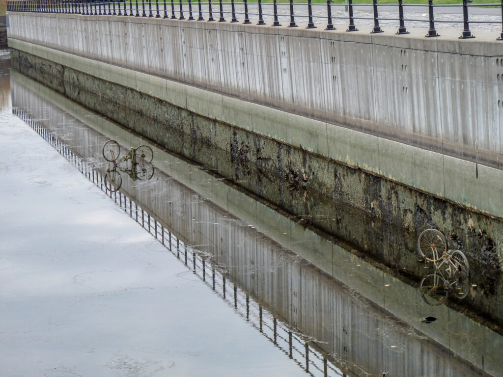 Singulière rencontre que de croiser ces 2 vélos dans un des bassins Peel à Montréal. L’effet miroir créé par l’eau et les nuances de gris données par le…